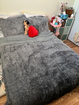 The Leena Shaggy Long Fur Comforter Mini Set brings a soft contemporary update to your bedroom. The comforter and shams (1 in Twin/TwinXL) feature stylish shaggy faux fur that creates a soft fluffy texture and modern look. The solid plush reverse adds a soft and warm touch. Items in the set may come in a rolled or compressed packaging, which will need to be fluffed up or steam ironed before use to remove wrinkles.