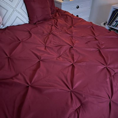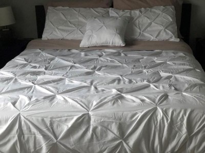 I really love the style of this bedding, and I had been looking for a nice, rich blue color for our bedroom. I currently have similar bedding in a grey color that I have had for over 4 years. Once I put the blue bedding on my bed, I realized this is the same brand as I have had for the past 4 years. The bedding has been extremely durable, and in those 4+ years only one pintuck has come undone. The blue bedding has very rich and beautiful coloring, and has more body than the other comforters I’ve tried. I am so excited about this bedding, and here’s to hoping it’s as durable as my last purchase from this brand.