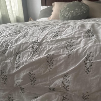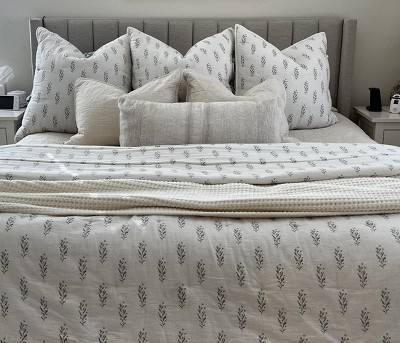 King Lofty Cotton Slub Wood Block Floral Quilt White - Threshold™ designed with Studio McGee: Midweight, Machine Washable, Polyester Fill