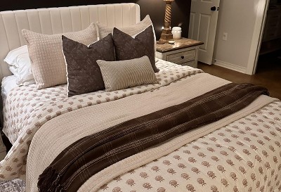 This quilt has some fluff to it which makes it a great for styling a bed. Very neutral and love the pattern.