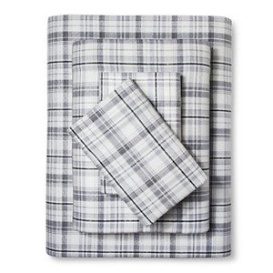 King Patterned Flannel Sheet Set Plaid Gray - Eddie Bauer