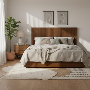 This bed frame brings a touch of warmth and simplicity to your bedroom with its rich brown/black/white finish and balanced, modern lines. Its low-profile design creates an airy, open feel, perfect for spreading out and relaxing. The frame includes a sturdy slatted support base that boosts airflow and helps your mattress last longer—no box spring needed. Reinforced legs and a solid center support keep everything steady and silent night after night. Crafted from a mix of solid and engineered wood, it offers lasting strength and resistance to everyday wear. The textured vertical headboard adds a cozy yet contemporary accent. Designed for easy assembly with clear instructions and all hardware included, this bed frame is both a stylish anchor for your bedroom and a dependable foundation for deep, comfortable sleep. It’s made to offer great value and everyday reliability for years to come.