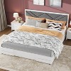 - Sleek Padded Headboard: The headboard’s plush cushioning and smooth fabric lend a contemporary flair while providing a supportive spot for reading or unwinding, adding warmth and comfort to your bedroom.