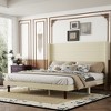 Queen/King Size Platform Bed with Comfortable High Headboard Bed, White/Beige-ModernLuxe