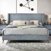 - Luxurious Upholstery: The Mavela bed is wrapped in luxurious, wide wale corduroy upholstery in a soothing blue color. This soft, plush fabric not only adds a sophisticated touch to your bedroom but also enhances comfort, inviting you to relax and unwind in style.