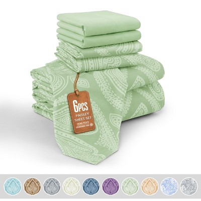 • PACKAGE INCLUDE: Our 6 Piece Paisley Sheet Set includes 1 flat sheet, 1 fitted sheet and 4 pillowcases (Twin size comes with 2 pillowcases)