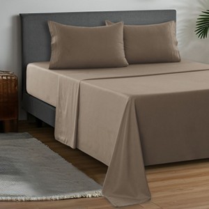 King Size Sheets Set Deep Pocket Bedding 4 Piece Solid Sheet Set - Brown
