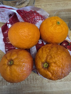 I love these oranges. I've bought them like 15 times! I can't get enough. The more red on the peel equates to red flesh. They are sweeter and juicer than the Cara Cara oranges that I usually buy.