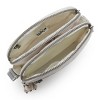 - Inside: snap-close center divider with two zip compartments and slip pocket