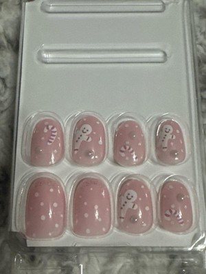 - Pink Oval Short Christmas Nails 28 Fake Nails with Nail Glue
