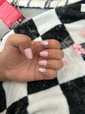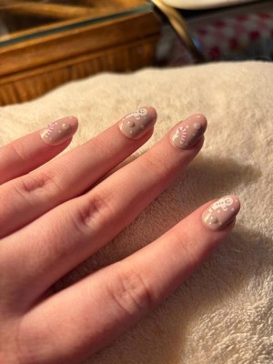[This review was collected as part of a promotion.] These are PERFECT for Christmas time! The pearl decal and the baby pink and white color theme are to die for. And I love the art it came out super cute! Everyone knows that Kiss ails are long-lasting, easy to remove, and durable! But their designs are also top tier!