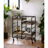 - Rectangular Serving Cart, Storage: 3 Open Compartments, 3 Wooden Adjustable Trays, Metal Open Frame, Caster Wheels
