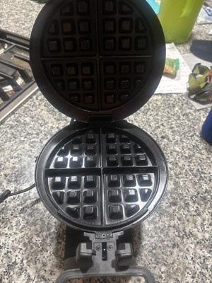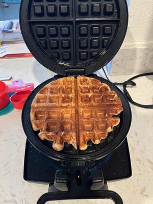 [This review was collected as part of a promotion.] Love love love this waffle maker! Took it right out of the box washed it up and used. Was excited to get started. So easy to use. Put your batter in when the light turns on. Then flip it over and it kicks into place. Light comes on when it is done. I tried it couple of times and let it stay longer and it never burned. I like how it doesn’t stay stuck in it. The waffle comes right out. Super easy to clean when finished. I made blueberry waffles and some of the batter poured out of sides and honestly it wasn’t hard to clean up and it came right off. We use this almost every morning.