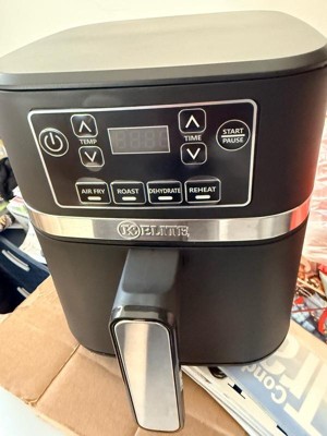 - Compact air fryer features 4 one-touch functions for effortless versatility- Air Fry, Roast, Dehydrate, and Reheat