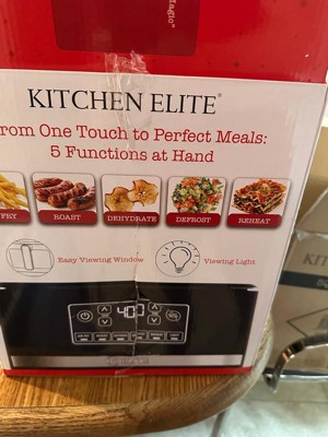 WARNING:Cook for the whole family with the Kitchen Elite 5QT Digital Air Fryer Oven, a sleek countertop appliance that combines generous capacity with precision controls for healthier, oil-free meals every day. Designed with convenience in mind, this versatile air fryer features 5 one-touch cooking functions—Air Fry, Roast, Dehydrate, Defrost, and Reheat—making it easy to prepare everything from golden, crispy fries and juicy roasted meats to homemade dried fruit and quick reheated leftovers. The built-in viewing window with an internal light lets you check on your food as it cooks without needing to open the basket, helping retain heat and ensuring perfect results every time.