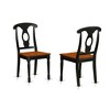 - The kitchen table boasts a cherry round tabletop and sturdy black pedestal legs, complemented by dining chairs constructed with a black finish wood, providing an elegant color scheme that elevates the look of your kitchen with wooden seats and sturdy pedestal legs.
