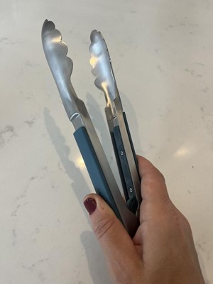 I really love these tongs! They are a little different than normal tongs. You have to slide the little bar on the side to open and close them. After getting used to that they are very simple to use. I really like the blue color too!