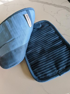 [This review was collected as part of a promotion.] KitchenAid Beacon Two-Tone Pot Holders in Blue Corn/Cobalt have been a great addition to my kitchen and cooking safety equipment. I have used them with oven cooking and even with grilling and they are a perfect size for large hot pots and pans to keep hands burn-free. I love KitchenAid products and how useful they continue to be in my kitchen.