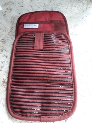 [This review was collected as part of a promotion.] I was in need of replacing my pot holders and came across the KitchenAid Beacon Two-Tone Pot Holder 2 pack. As I was examining them in turning the pot holder over I found they had silicone strips on the underside, I thought the concept was a very good idea. It truly was, in using the pot holders I found it easier to handle hot dishes, pots, and pans without any slipping. The extra bonus is they have a pocket you can slip your hand into keep from burning the top of your hand when removing items from the oven. The KitchenAId Beacon Two-Tone Pot Holder comes in a set of two, measure 7" W x 10" L, and have a hanging loop. They also come in a variety of colors, so you can mix or match with your kitchen decor. I also use mine as a pot holder for hot dishes on the counter and serving table. They are machine washable, but I think I'll let them air dry so the silicon isn't affected by the dryer.
