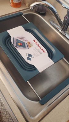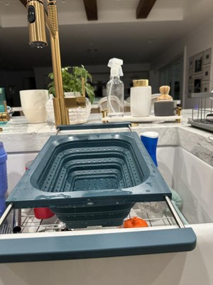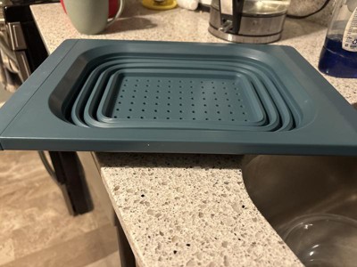 Works very good and fits perfect on my sink. I love the blue color and that it can be put in the dishwasher! Glad I was able to test this out I have been needing one. Perfect for washing fruits and vegetables!