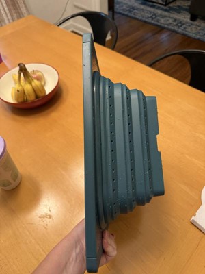 I have always wanted on of these that collapse like this. It's seriously such a space saver! This one is very durable and amazing quality! Thicker and does an awesome job. The collapsing allows me to store it next to my pans and its close to flat. It is very easy to rinse and clean also which is a huge plus! The color is very pretty too!