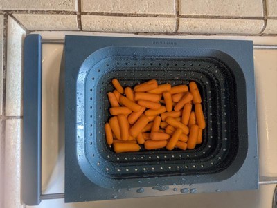 I love how big this colander is and how easily it collapses. It’s almost flat. It easily spreads out over the sink but you wouldn’t necessarily have to use it over a sink. The only thing I don’t love is that the handles slide a little too easily for my liking.