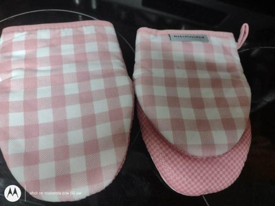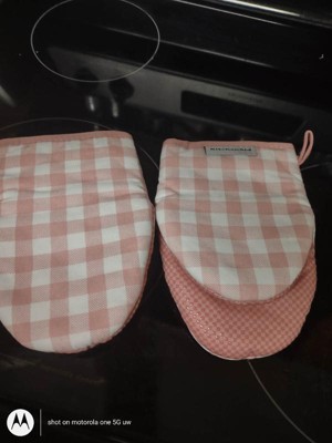 KitchenAid Gingham Mini Oven Mitts 2-Pack, Dried Rose
