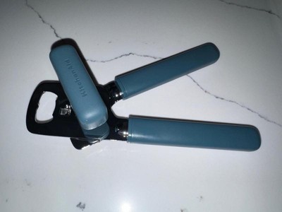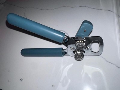 I'm really pleased with this KitchenAid can opener. It seems to be really sturdy. It opens up cans easily with minimal effort. I really like the ocean blue color. I feel like this is durable and will last a really long time. Also has a bottle opener if you need that as well.