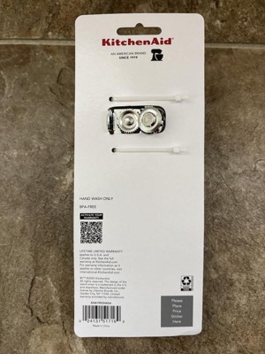 Another great utensil by KitchenAid. The handles Are smooth and easy to operate. It’s also very easy to turn the mob. Easier than most other. Appliances I’ve tried. It is stainless steel and easily thrown in the dishwasher. It also has a bottle cap opener on the