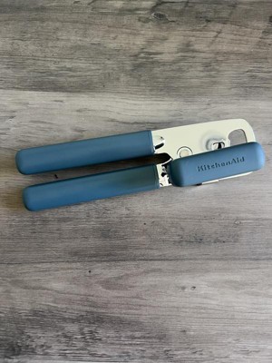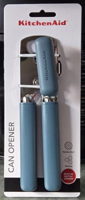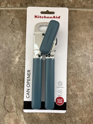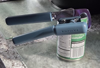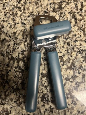I'm really pleased with this KitchenAid can opener. It seems to be really sturdy. It opens up cans easily with minimal effort. I really like the ocean blue color. I feel like this is durable and will last a really long time. Also has a bottle opener if you need that as well.