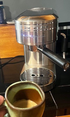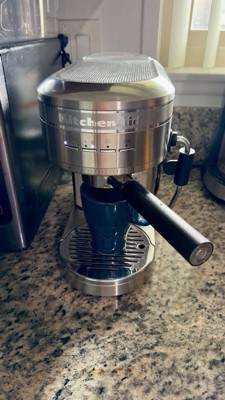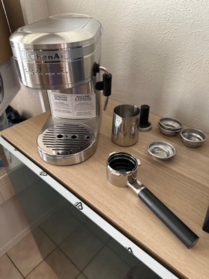[This review was collected as part of a promotion.] KitchenAid truly lives up to their name. I am truly over the moon for this espresso machine! It has surpassed all my expectations and needs! Making coffee at home has never been so satisfying. First off, the design is so simple and elegant. I love how easy it is to wipe clean before and after brewing an espresso. The initial setup was pretty simple and the instructions are seemingly straightforward. After a few minutes of reading the instructions, I was ready to began filling up my water reservoir (includes a handle) which was a bonus in my book. Next, I found my desired filter basket. (Refer to pg. 6 in manual) for basket selection chart. I used the single wall (2 shot) for my latte of choice. After following the rest of the instructions I was ready to brew. Positioning the portafilter is very easy but make sure to align it correctly with the unlock/lock mechanism. The entire brewing process only took about 30 seconds. The temperature was perfect and the taste was even better! This semi-automatic espresso machine is made remarkably well. It’s durable and has all the features I was looking for in an espresso maker. Overall, I’m very pleased with the craftsmanship of this machine and the overall design. It’s been fun recreating my favorite lattes at home! Reminder: when cleaning the milk frother make sure to point it towards the drip tray or into an empty cup. Otherwise, it will spray hot water everywhere!