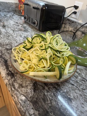 - Includes 5 quick-change blades* so you can be creative with fresh ingredients. *Spiralizing (Medium and Fine), Slicing (Large and Small Core), and an optional Peeling Blade.