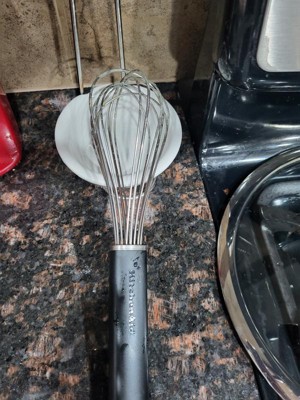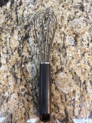 KitchenAid rarely disappoints, and this whisk is no exception. The oblong handle makes the grip comfortable, and it made fast work of my scrambled eggs! I always appreciate when utensils are dishwasher safe, so that is another benefit of this whisk!