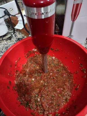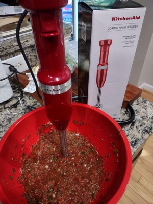 [This review was collected as part of a promotion.] I was so excited to try this corded hand blender from KitchenAid. I was thinking of all the food I could prep with it and then New England decided to have a heat wave of temps close to 100 degrees. My husband asked if I could make frozen lemonade with it and I said let me try! It was a perfect blend- held up great against the crushed ice and blended smoothly. Super quiet for a mixer and such an easy clean up. When it cools down outside I can't wait to make homemade tomato soup!