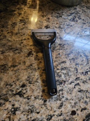 The KitchenAid Y-Peeler was very disappointing. I’ve always found KA to be sturdy but I find this to be very cheaply made. I had to apply very hard pressure to peel my fruit and veggies and even then it doesn’t give you a very good peel.