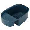 Enjoy convenience and versatility with this kitchen tool that functions as both a sink strainer and a colander, perfect for washing fruits and vegetables with ease. Featuring optimal perforations for fast, thorough drainage, it helps keep food fresh while preventing sink clogs. Its space-saving design allows for compact storage, making it an essential addition to any organized kitchen.