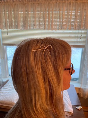 I think this Bow Bobby pin set is so cute. I love the pretty Bobby pins. They go in your hair smooth and they do not slide down or sideways. Very stylish! So nice for all types of hair, short, medium and long. I recommend this set! It's from "the cloud" set!