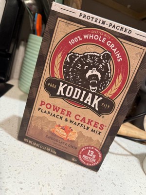 [This review was collected as part of a promotion.] Kodiak Cakes - Chocolate Chip Power Cakes are a new breakfast staple in our home. They’re incredibly easy to make, and I love that you can use water or milk depending on how fluffy you want them. The chocolate chips melt perfectly into each pancake without being overly sweet, and the whole-grain flavor gives them a hearty, comforting taste. The real standout is the protein — these actually keep me full for hours, which is rare for a pancake mix. They cook up evenly, don’t get gummy, and still taste indulgent while being a better-for-you option. Whether I’m making a full stack on the weekend or a quick weekday waffle, they’re always delicious and reliable. If you like a balance of wholesome ingredients with a touch of chocolatey sweetness, these are a must-try!
