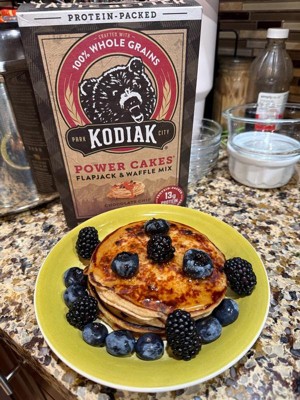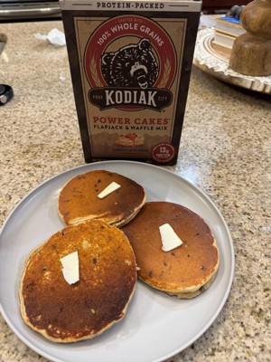 [This review was collected as part of a promotion.] I’ve been loving these Kodiak Power Cakes! The chocolate chip flavor is delicious and not too sweet. I added just a little bit of sugar and used milk instead of water — the batter came out perfect, and the waffles turned out super fluffy and tasty. Plus, 13g of protein per serving makes it a great breakfast option. Definitely recommend!