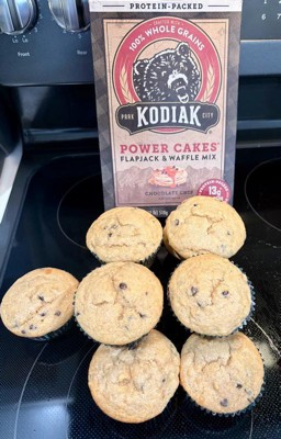 [This review was collected as part of a promotion.] We are big Kodiak Cake fans, so I was really excited to try the chocolate chip power cakes! I decided to use the muffin recipe on the back and they turned out great. I just added a few ingredients to the bowl with the mix and poured into the tin, super easy and quick! The muffins taste good and you don’t even realize they have extra protein. My only complaint was I wish there were a few more chocolate chips in the mix! There was a little leftover mix after the muffins, so I will be making pancakes too. Package was easy to open.