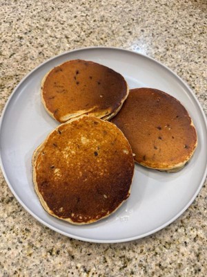 [This review was collected as part of a promotion.] Overall I really like these. I was hoping to get blueberry but the chocolate chip ones were good. Overall slightly denser texture than regular pancakes, but they also feel heartier and more filling, in a good way.