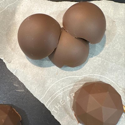 I used specialty chocolate made for melting and even did two layers to make sure it was thick enough. I got just two complete bombs made. The rest cracked when I tried to remove them from the molds. The molds are not smooth enough to allow the chocolate to slide out easily. Gently loosening the sides will just cause the sides to crack. Really disappointed this didn’t work, but glad I tested this ahead as this is my only plan for Christmas gifts this year. One star for the geometric shape one, which was pretty and unique and ironically the only one I got the completed balls from. I thought for sure that one would be harder.