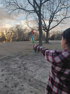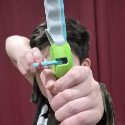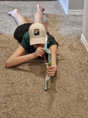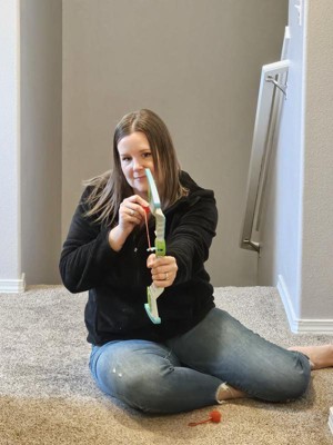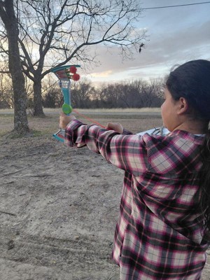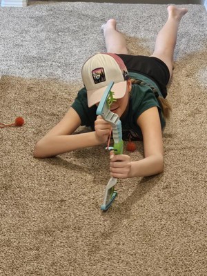 I received this product in exchange for an honest review. We were a little worried about this before receiving it but once we did my kids just loved it. it was so easy to put together and my favorite part easy to store it. the koosh balls attach onto the bow launcher so literally no mess when they are done. my girls found it so easy to use and loved the targets that came on the back of the box! we definitely recommend this toy!