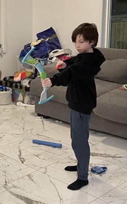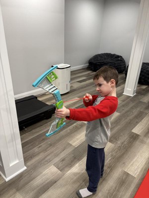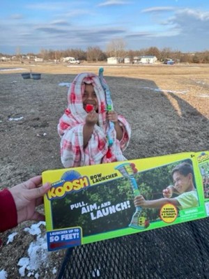I received this product in exchange for an honest review. This is not the most necessary item, but I suppose most toys aren't. It is, however, a lot of fun. It's a bow without arrows or a string, because the included "Koosh Launchers" each have a long tentacle to serve the purpose. There is storage on the bow for the launchers which makes this way better than just launching with your fingers. My kids have enjoyed taking aim and shooting targets. They've also have been having a terrific time calculating where the Koosh will land, how to adjust their aim, etc. The toy is very intuitive and takes virtually no time to learn how to use. The Koosh launchers are soft enough to not hurt humans under most circumstances. The projectiles could potentially knock over and damage things, though, so you'll want to be somewhat selective about where this is used. The launchers are also small enough to get lost in something like a clutter of toys. For my kids at least, getting to play with this is a good motivation to clean and keep their room clean!