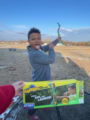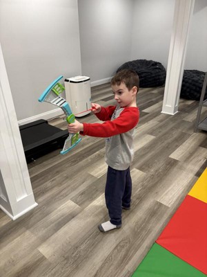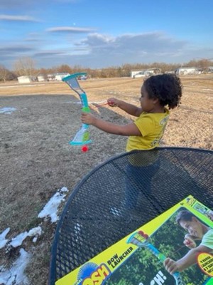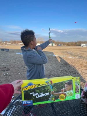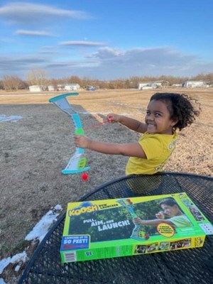 My six year old loves this toy! It was easy for him to use, and very entertaining. He quickly figured out how to launch the koosh and was excited to see how far he could shoot it. Most importantly, he only shot at the targets it comes with. We currently have too much snow to use it outside, and used it in our basement, but we can’t wait to use it outside!