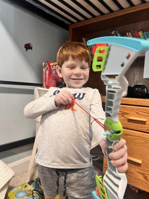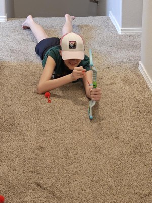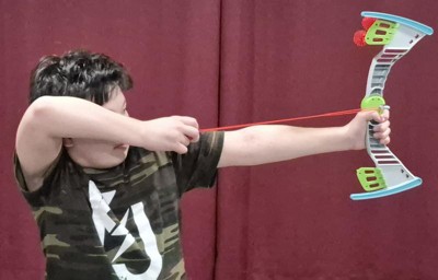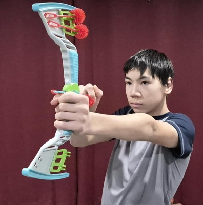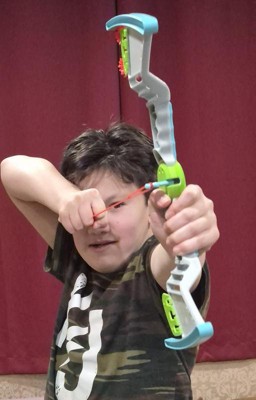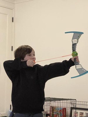 This is a fun game with a very powerful bow! The bow is easy to assemble and has a storage section to hold extra looped balls. Very lightweight and easy to hold bow and you can really launch the balls far if you pull back hard enough! The kids and I had so much fun! The only thing we didn’t like were the low, flimsy targets. It was very hard to get the base to stay on the target so the target could stand up. The targets fell over a lot. We found it more fun to just launch the ball all around the living room. Even the dog enjoyed chasing the ball after it was launched! Fun game for the whole family!