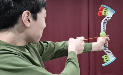 I received this product in exchange for an honest review. This Koosh bow launcher was a hit with the boys and kept them happily engaged. The game was easy for them to understand yet challenging to hit the targets. The bow is sturdy and light, making it easy for many different age groups to use. The Koosh balls are made of soft material, making it safe to play inside or outside, depending on where you have the most available space. We’ve played it multiple times. I recommend this product for a fun activity to play with your children/family!