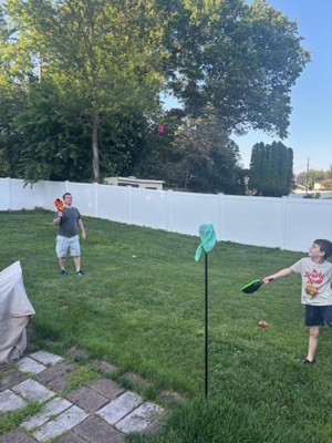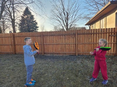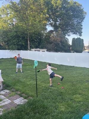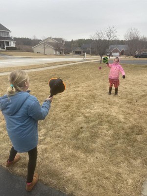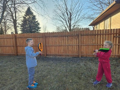 This game is a great way to get your child moving, while still having fun! The quality of the sticks are very sturdy, and the koosh ball is nice and soft. I like that this game can be played outside or yet safe enough to play inside because of the soft ball provided. They enjoyed seeing how high they could get the ball, but yet still catch it. I anticipate this game being played often with our family and friends. I recommend this product for a fun activity to play with your child.