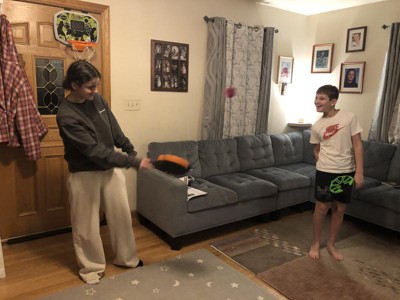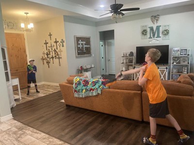 My kids liked practicing throwing and catching normally, but also liked learning how to flick the koosh ball like a lacrosse player. It took some practice for my 6 year old to be able to throw it like a lacrosse player, but she eventually got it. Koosh flix sticks are easier to use than similar catching and throwing products out there. My kids liked to make up games to throw it over the kitchen peninsula and to throw it up and down the stairs. This game can be played outside, but it is also safe enough to be played inside. I like this game because it encourages kids to be moving and active, even in the winter months.