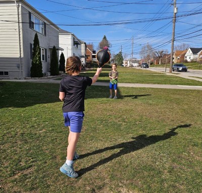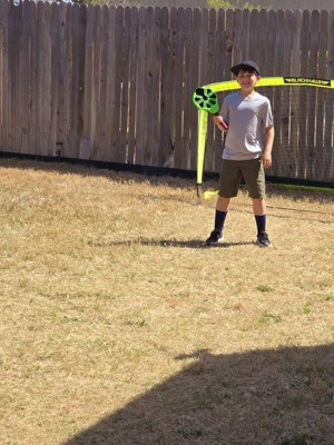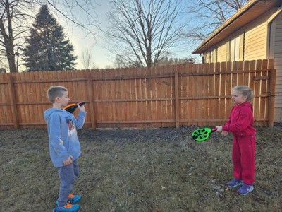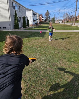 My kids had a lot of fun with this outdoor toy. It is fun to watch them try and catch it back and forth. I love that it helps them work together as well. It seems very durable and well made. I love the bright colors as well.